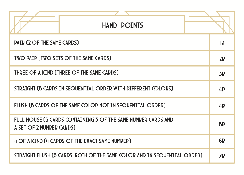 If a player played a hand of C.R.A.P. during their turn, they get billions depending on the complexity of their hand. If a player gets to $12 billion or more, they remove a bag token and reset their coin to 0.